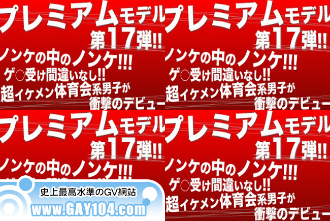 プレミアムモデル第17弾!!ノンケの中のノンケ!!もっとも男に抜かれることが想像もできない超イケメン体育会系男子が衝撃のデビュー!!長期に渡りスタッフが交渉を重ねてきた現役アスリート…男らしい雰囲気に爽やかさ、ガッチリBODY…端正な顔出ちとゲ○受け間違いなし!!!鍛えられた肉体美は必見☆そんな彼をスタッフが責めまくっちゃいました☆イケメンの割に「オナニーしていると思えばいいのか…」と超テレまくり彼!!そんな彼が男に身体を触られ即ビンビン!!さらにローションでジックリ責めまくると感じまくる場面も・・最後はあまりの気持ちよさに耐えられず大量精子を勢いよく発射!!スタッフ一押し☆この機会お見逃しなく☆