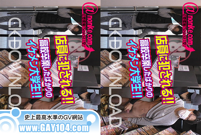 監視カメラを見ていると店員のタイプが来店!!こないだまで高校生だったイケメン大学生をロックオン!!棚の隙間からイタズラをして楽しんだ後は隣に移動して股間にタッチ!!嫌がる大学生に『何してたの?』と難癖をつけて襲い掛かる!!