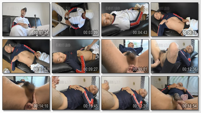 坊主球児君!指でエロ穴パックリ開帳!オナホで扱かれドッピュドピュ!