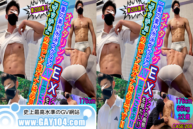 『ノンケの痴態を見たい!!』だけの為に作られた新レーベル【オナタリングEX】CASE:208 「普段のオナニーをお金に変えてみませんか?」そんな甘い誘いにイケメン達がこぞって順番待ちの【オナタリングEX】今回は部活が忙しくて全然エッチのチャンスがなくAV女優さんとヤレたら!と面接応募に来た176.66.22の水泳部大学生♪運動部らしい一重の素朴系のイケメン君。もちろんまずはボディチェックから♪シャツを脱ぐと、さすが水泳部!パンパンに張った胸筋に逞しい腕肩、バキバキに割れた腹筋に深く切り込まれた腹斜筋!下半身も逞しく、太く締まった太腿にプリプリのケツ筋…背中も筋肉隆々でまさにザ・体育会!!もっとこのエロボディを隅々まで堪能すべく、軽く筋トレを♪めちゃ真面目な性格で言われた事はなんでも素直に聞いてくれてチューブトレーニングからアナル丸出し、すっぽり仮性のエロチン丸出しで全裸スクワットまで^^♪あとは耐久性チェックをと、電マで刺激され乳首を舐められ男フェラまでフルコース♪最後は普段からやってるという床オナをお願いすると筋骨隆々なエロボディを床に擦り付け、ケツ筋を張りながら脚ピンでグリグリ、漏れる吐息がめちゃエロい…。最後は我慢の限界に一度も手を触れず「出ちゃう、、」と恥ずかしそうにカラダを反転させるとどぴゅ、どぴゅっと真っ白な濃厚精子を床に射精し…。帰りのシャワーではすっぽり仮性から勢いよくブッ放す大量放尿まで頑張ってくれたエロボディ水泳部君♪AV面接合格するといいね〜^^♪
